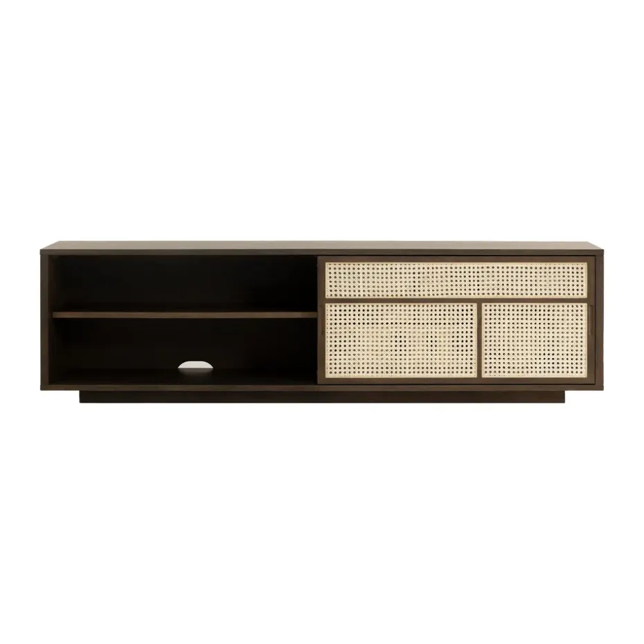 - Materiales: Materiales: MDF, poliuretano, chapa de roble, roble, ratánAcabado: Lacado