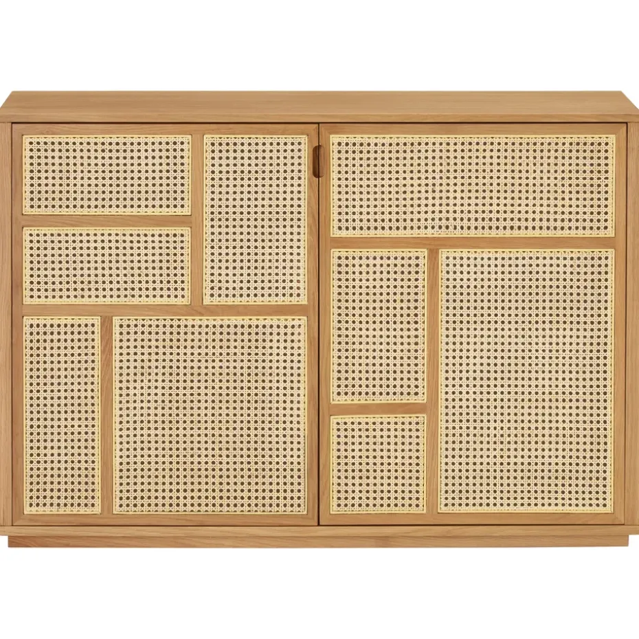 - Materiales: Chapa de roble, MDF, ratán