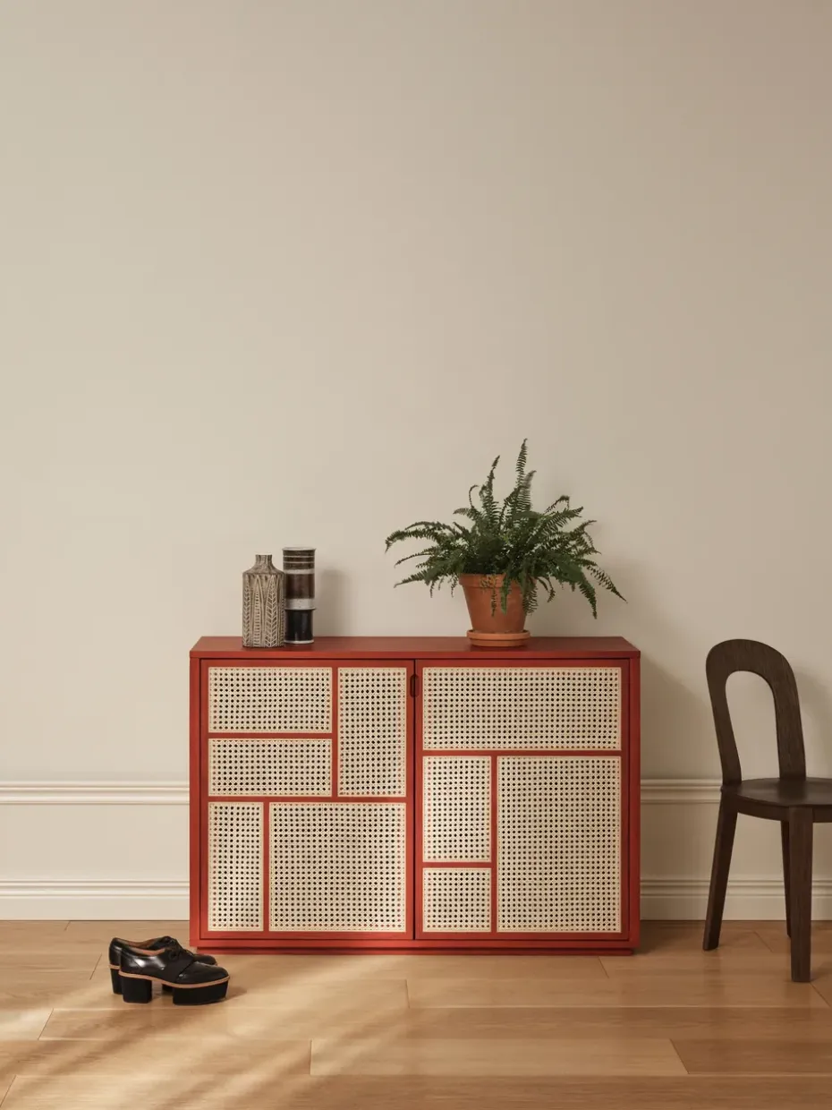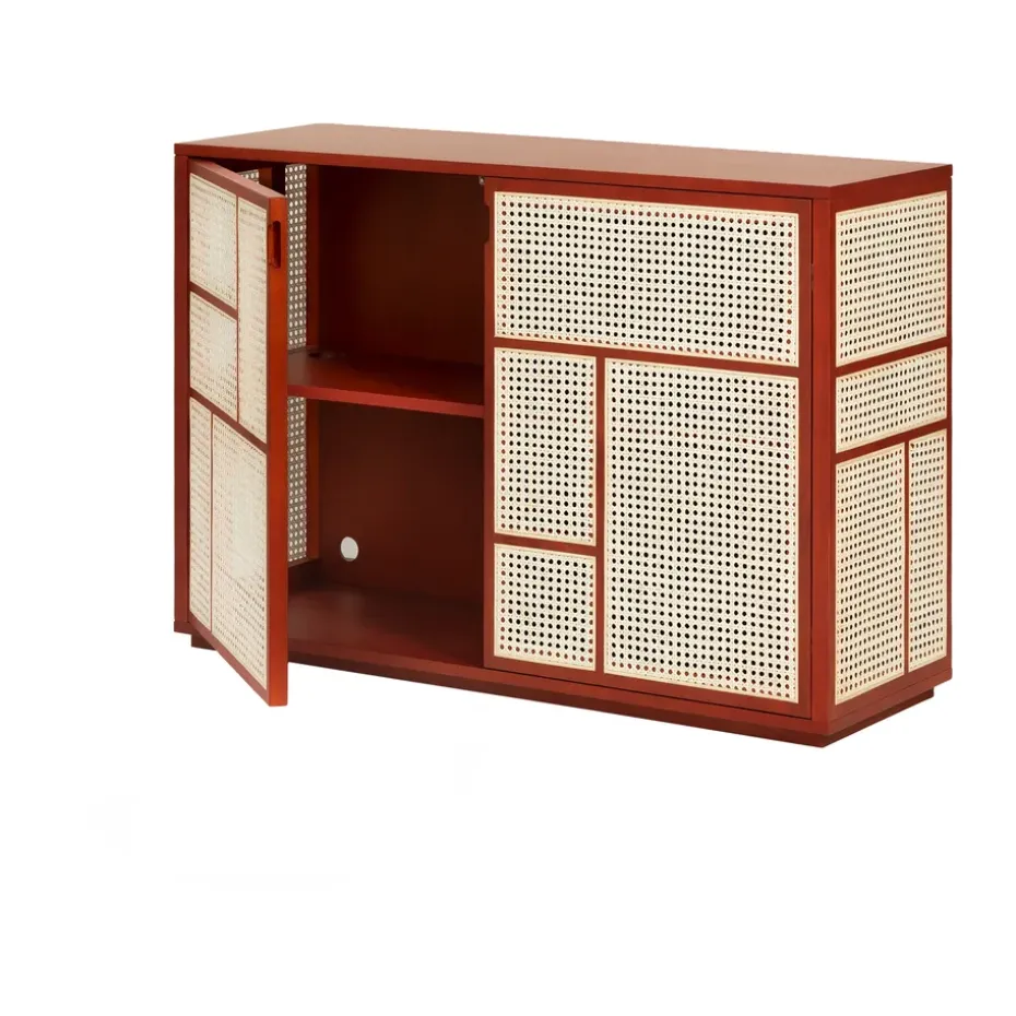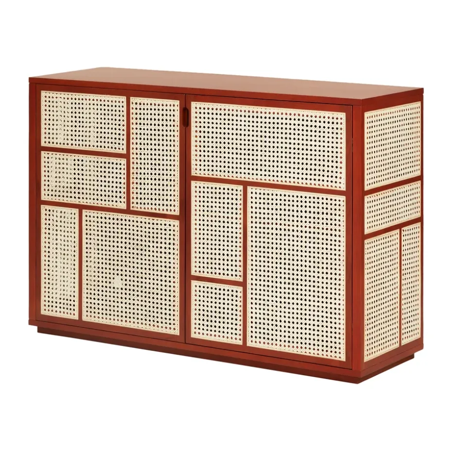 - Materiales: Materiales: MDF, poliuretano, chapa de roble, roble, ratánAcabado: Lacado
