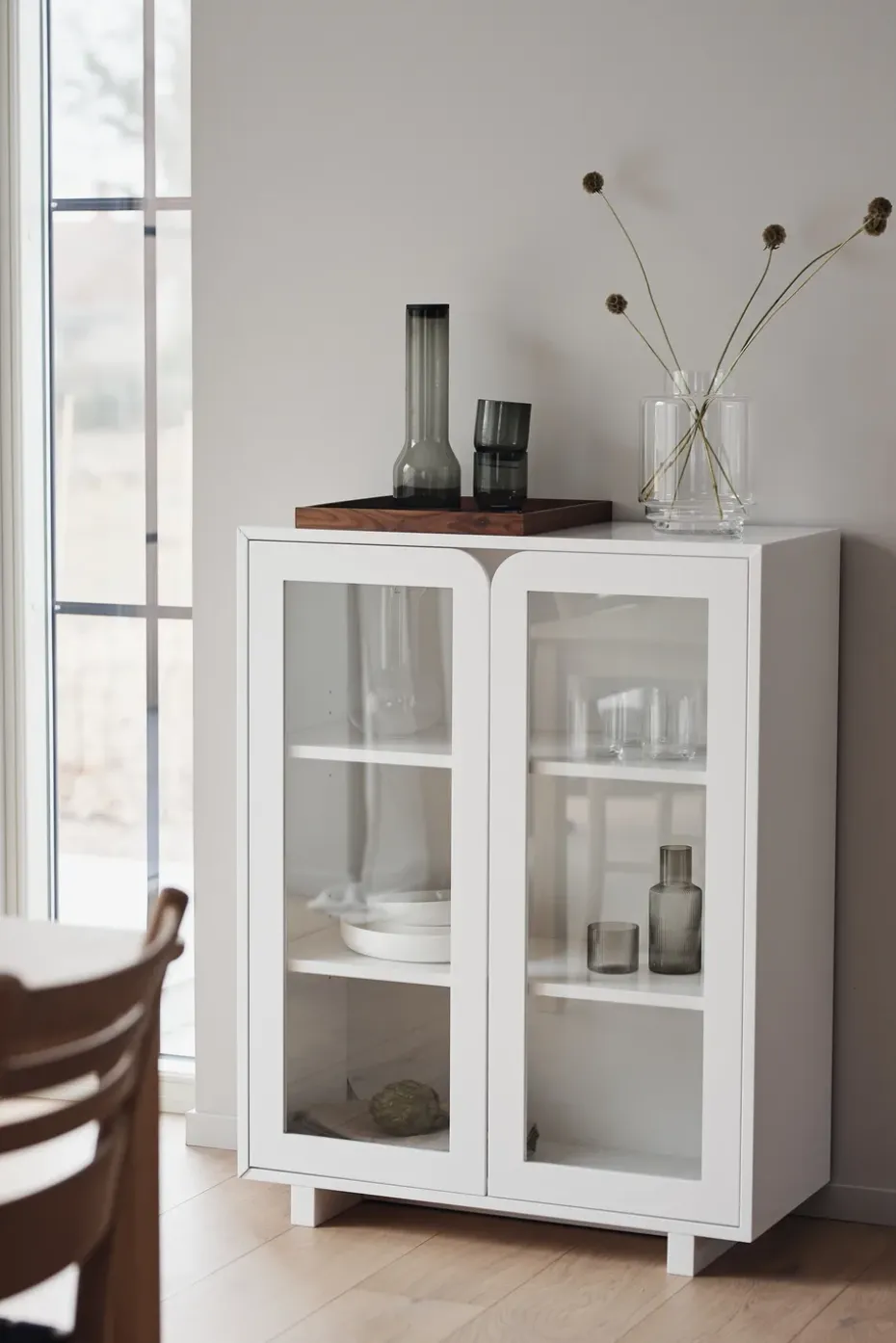 - Materiales: Materiales: MDF, roble, vidrioAcabado: LacadoPataMateriales: RobleAcabado: Lacado